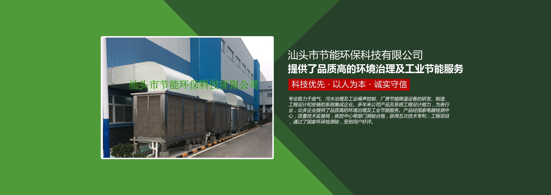 汕頭市節(jié)能環(huán)保科技有限公司創(chuàng)建于1998年,是一家專業(yè)致力于廢氣、污水、粉塵、噪聲治理,廠房節(jié)能降溫設備的研發(fā)、制造、工程設計和安裝的系統(tǒng)集成企業(yè)。多年來公司產(chǎn)品及系統(tǒng)工程設計能力,為各行業(yè),眾多企業(yè)提供了品質(zhì)高的環(huán)境治理及工業(yè)節(jié)能服務。產(chǎn)品經(jīng)國家電器檢測中心,質(zhì)量技術監(jiān)督局,疾控中心等部門測驗合格,獲得五次技術專利;工程項目通過了國家環(huán)保檢驗檢測,受到用戶好評。
